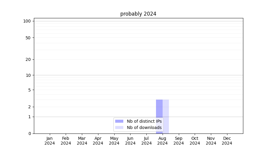 Number of downloads for experiment package probably, year by year, from 2025 back to 2014 (years with no downloads are omitted):