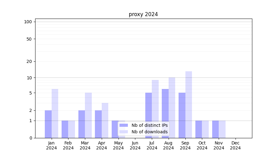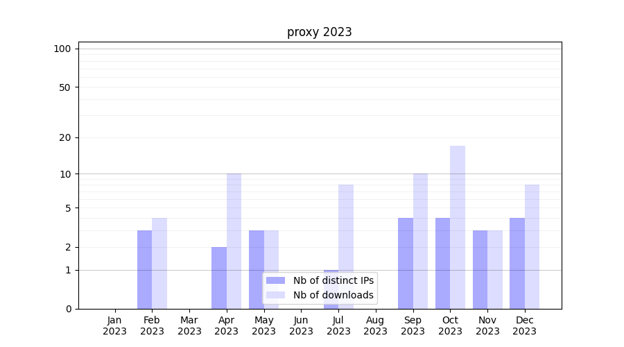 | Month | Nb of distinct IPs | Nb of downloads |