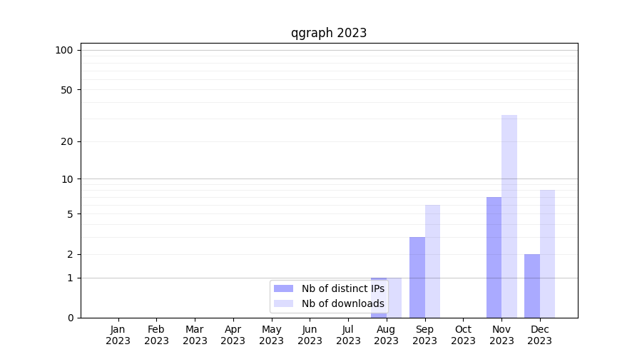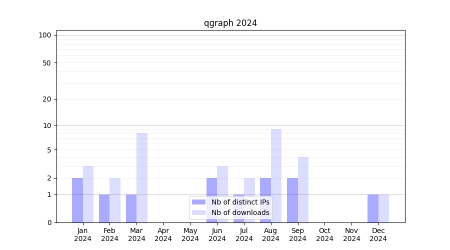 Number of downloads for experiment package qgraph, year by year, from 2025 back to 2014 (years with no downloads are omitted):