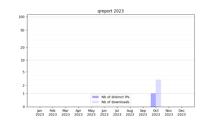 Number of downloads for experiment package qreport, year by year, from 2025 back to 2014 (years with no downloads are omitted):