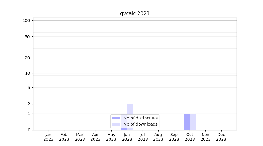 Number of downloads for experiment package qvcalc, year by year, from 2025 back to 2014 (years with no downloads are omitted):