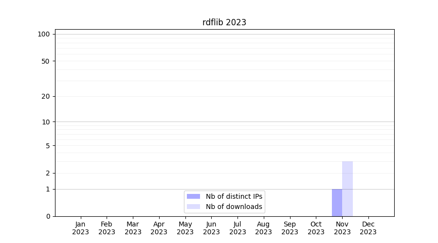 Number of downloads for experiment package rdflib, year by year, from 2025 back to 2014 (years with no downloads are omitted):