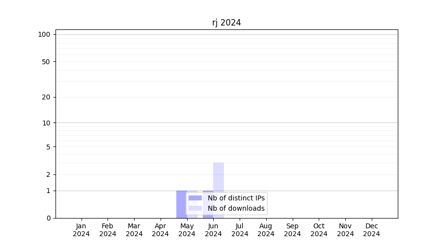 Number of downloads for experiment package rj, year by year, from 2025 back to 2014 (years with no downloads are omitted):