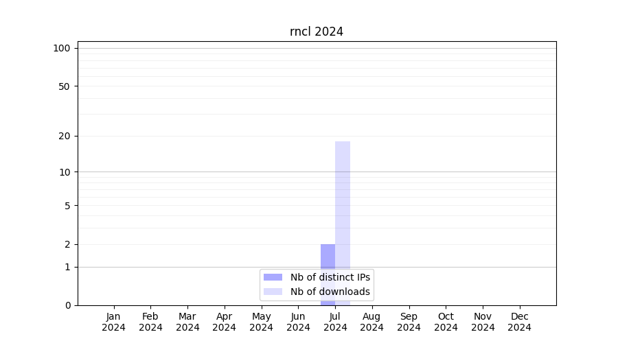 Number of downloads for experiment package rncl, year by year, from 2025 back to 2014 (years with no downloads are omitted):