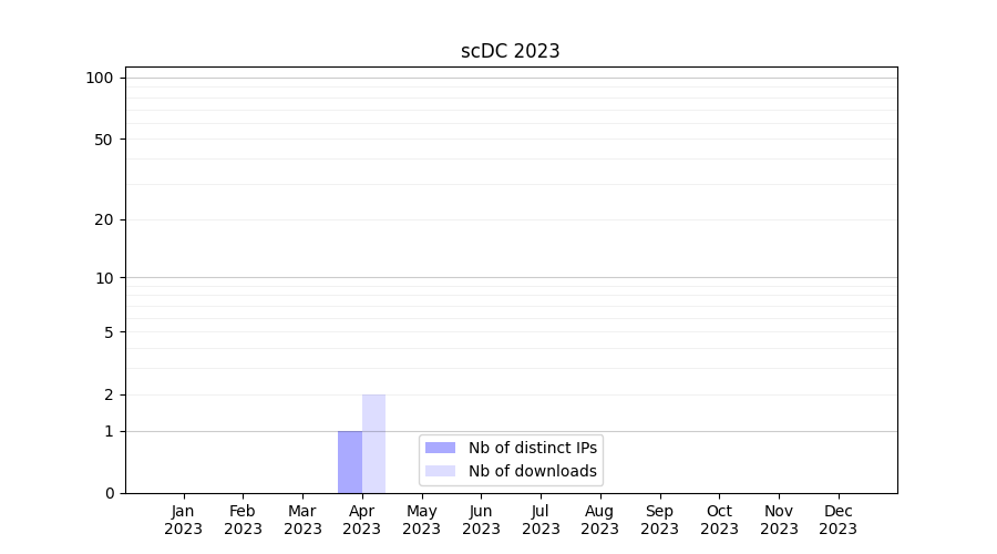 Number of downloads for experiment package scDC, year by year, from 2025 back to 2014 (years with no downloads are omitted):