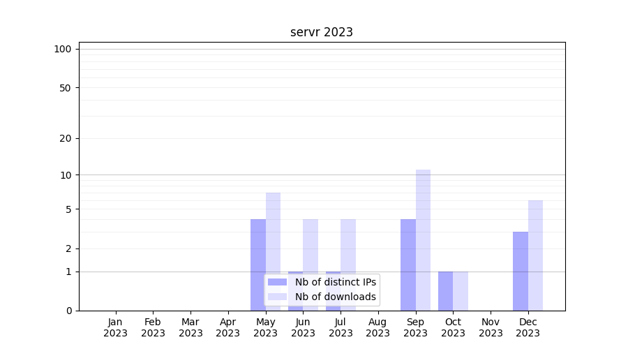| Month | Nb of distinct IPs | Nb of downloads |