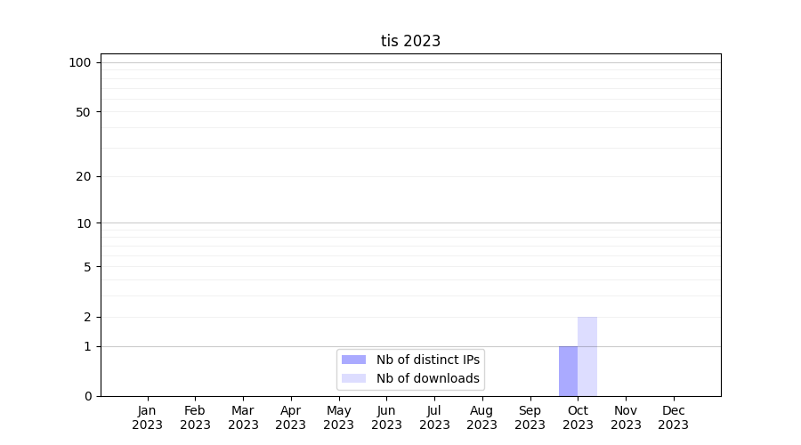 Number of downloads for experiment package tis, year by year, from 2025 back to 2014 (years with no downloads are omitted):