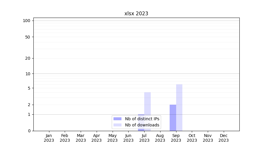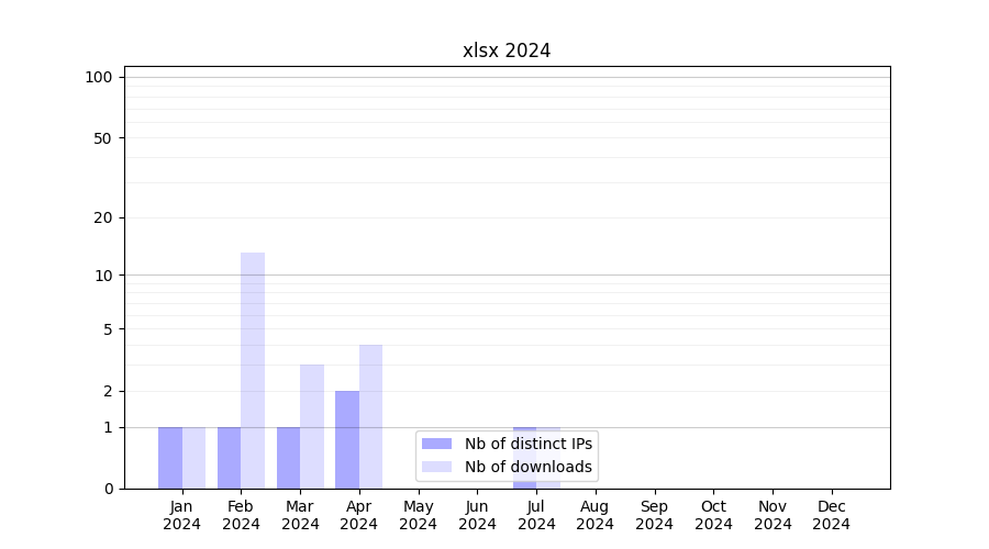Number of downloads for experiment package xlsx, year by year, from 2025 back to 2014 (years with no downloads are omitted):
