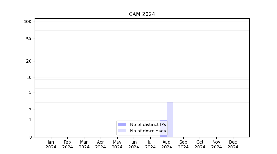 Number of downloads for workflow package CAM, year by year, from 2025 back to 2015 (years with no downloads are omitted):