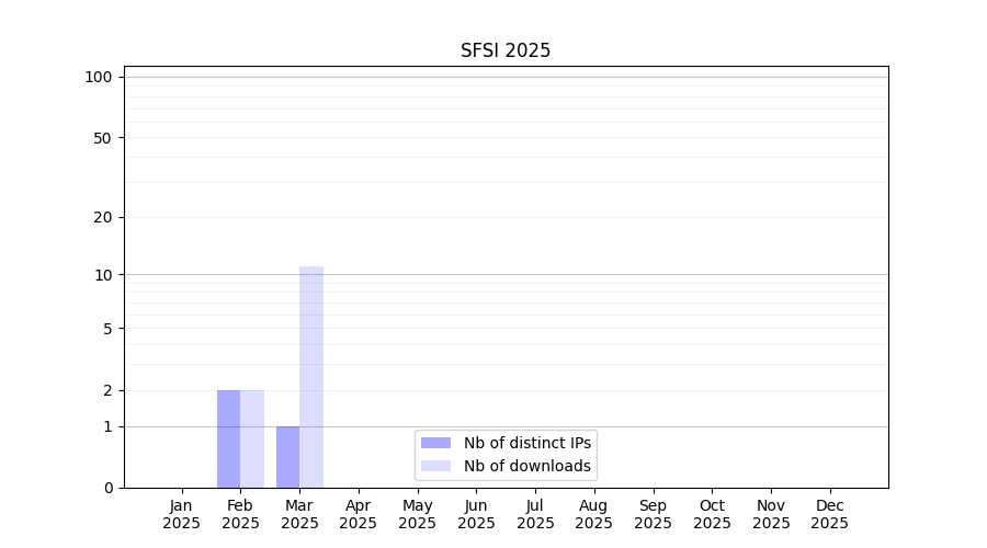 Number of downloads for workflow package SFSI, year by year, from 2025 back to 2015 (years with no downloads are omitted):