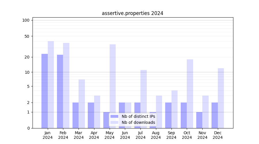 Number of downloads for workflow package assertive.properties, year by year, from 2025 back to 2015 (years with no downloads are omitted):
