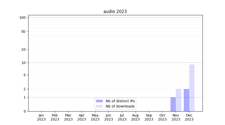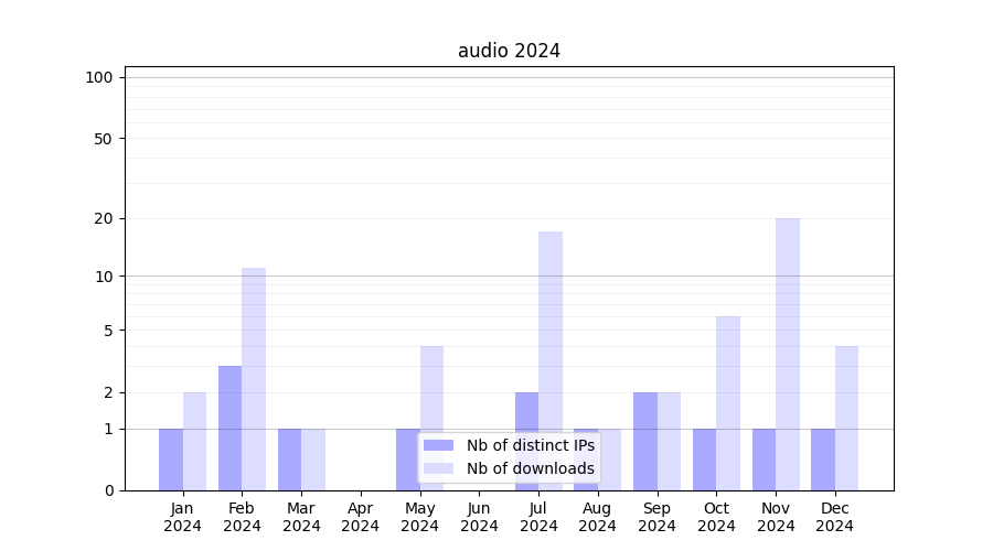 Number of downloads for workflow package audio, year by year, from 2025 back to 2015 (years with no downloads are omitted):