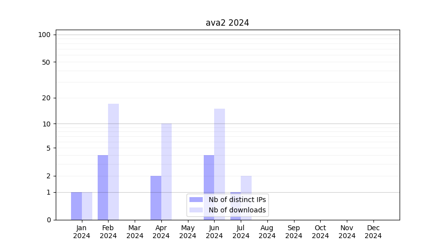 Number of downloads for workflow package ava2, year by year, from 2025 back to 2015 (years with no downloads are omitted):