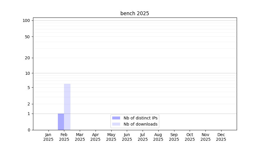 Number of downloads for workflow package bench, year by year, from 2025 back to 2015 (years with no downloads are omitted):