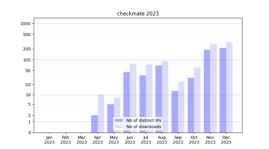 | Month | Nb of distinct IPs | Nb of downloads |