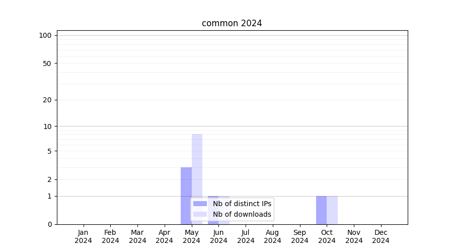 Number of downloads for workflow package common, year by year, from 2025 back to 2015 (years with no downloads are omitted):