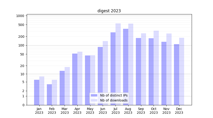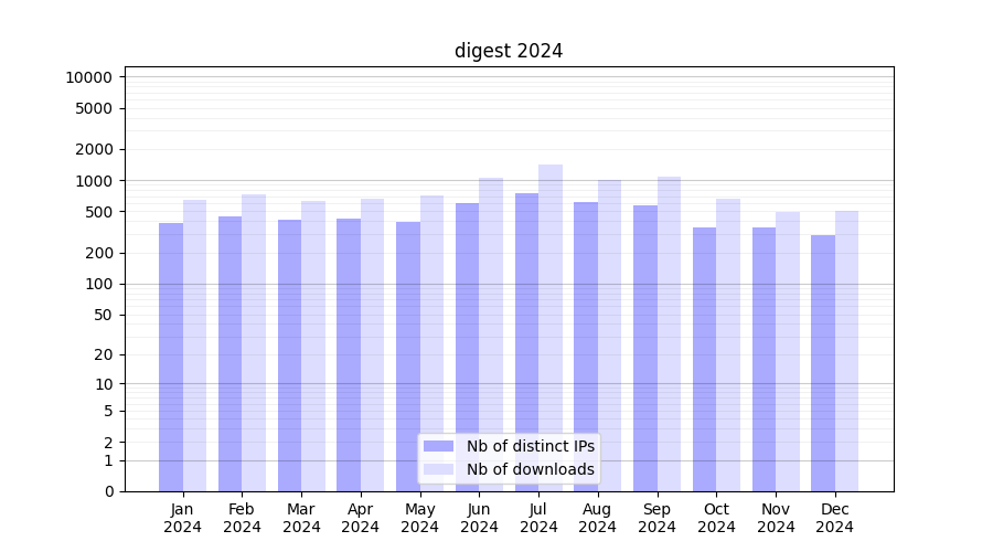 Number of downloads for workflow package digest, year by year, from 2025 back to 2015 (years with no downloads are omitted):