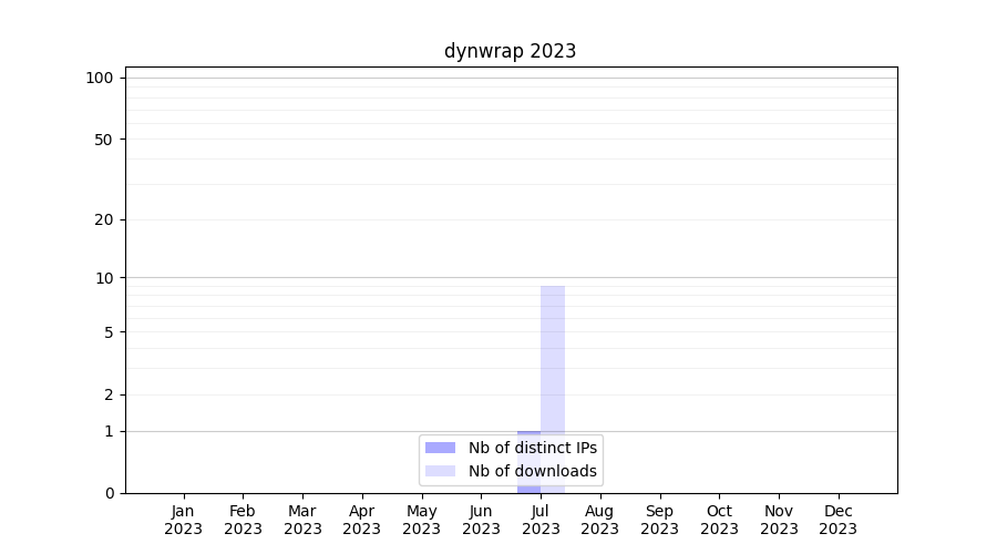 Number of downloads for workflow package dynwrap, year by year, from 2025 back to 2015 (years with no downloads are omitted):