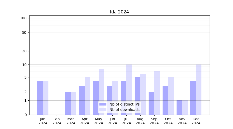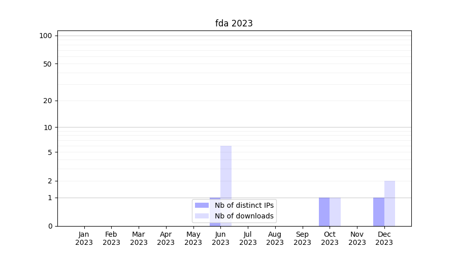 Number of downloads for workflow package fda, year by year, from 2025 back to 2015 (years with no downloads are omitted):