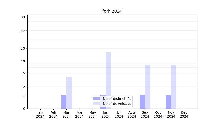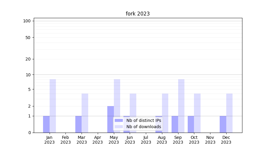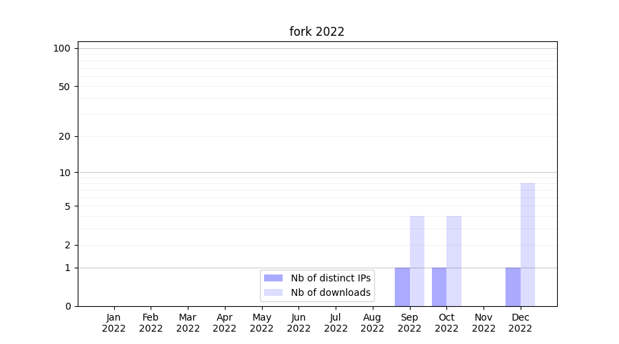 Number of downloads for workflow package fork, year by year, from 2025 back to 2015 (years with no downloads are omitted):