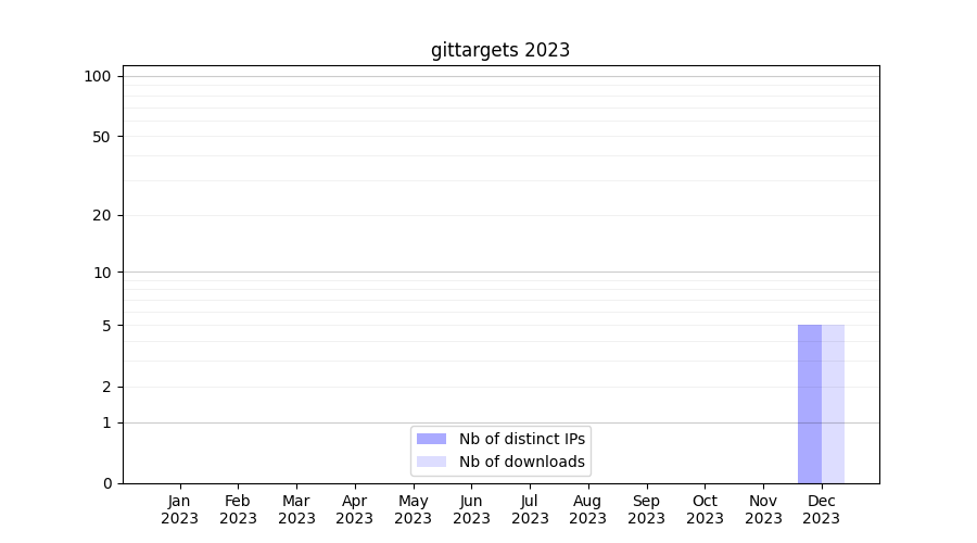 Number of downloads for workflow package gittargets, year by year, from 2025 back to 2015 (years with no downloads are omitted):