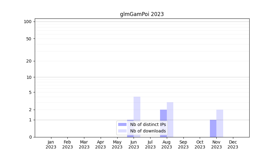 Number of downloads for workflow package glmGamPoi, year by year, from 2025 back to 2015 (years with no downloads are omitted):