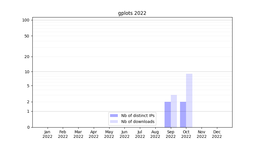 Number of downloads for workflow package gplots, year by year, from 2025 back to 2015 (years with no downloads are omitted):