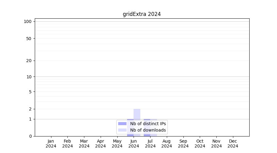 Number of downloads for workflow package gridExtra, year by year, from 2025 back to 2015 (years with no downloads are omitted):
