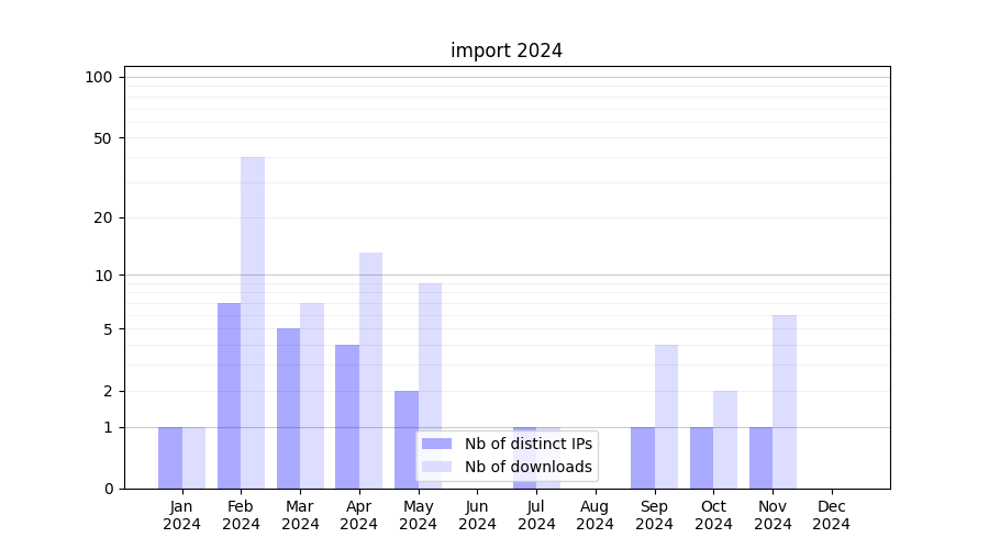 | Month | Nb of distinct IPs | Nb of downloads |