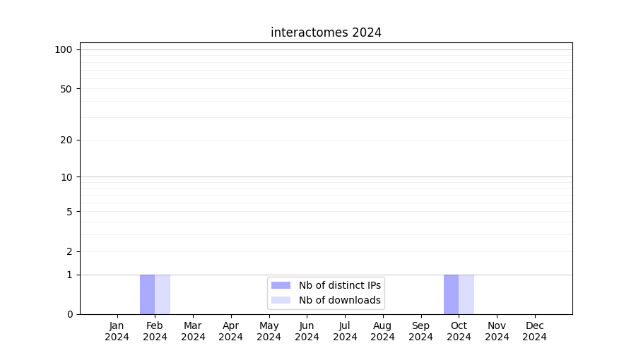 Number of downloads for workflow package interactomes, year by year, from 2025 back to 2015 (years with no downloads are omitted):