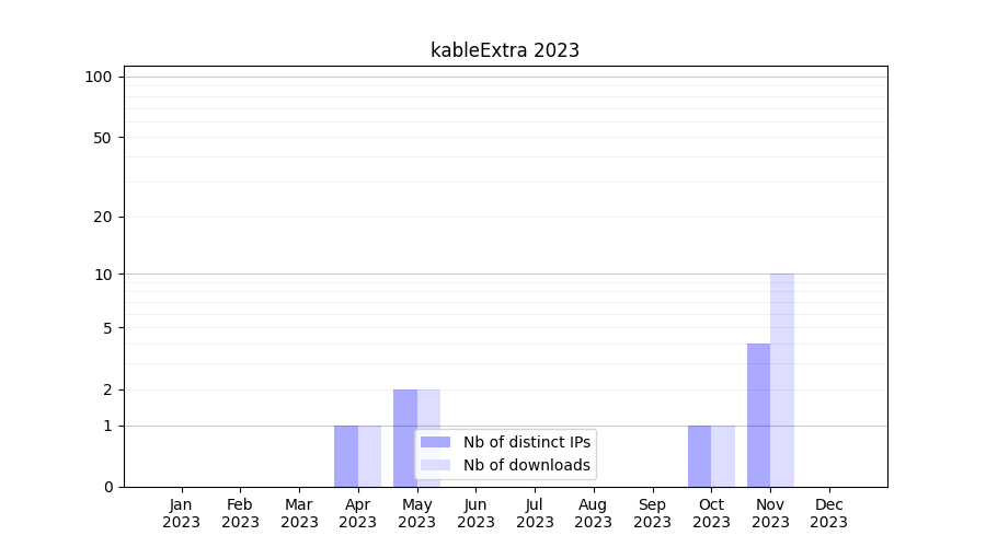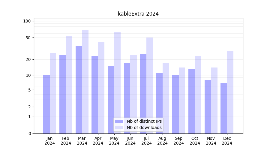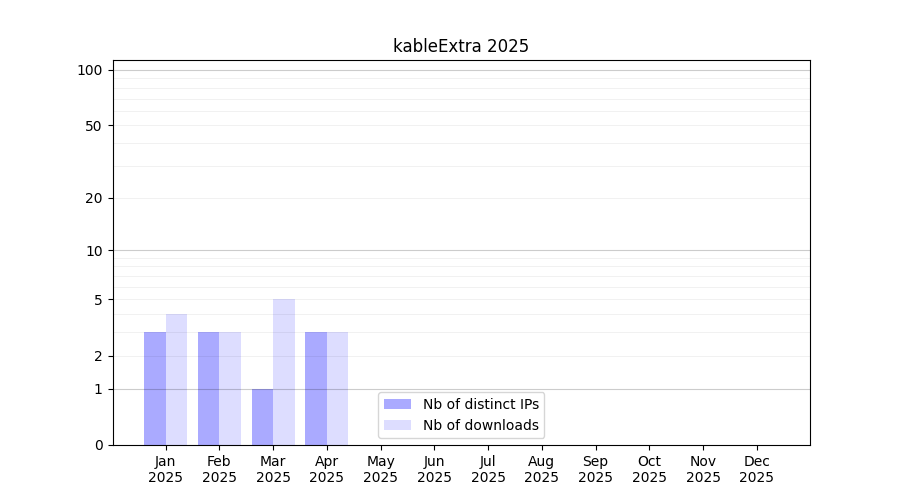 Number of downloads for workflow package kableExtra, year by year, from 2025 back to 2015 (years with no downloads are omitted):