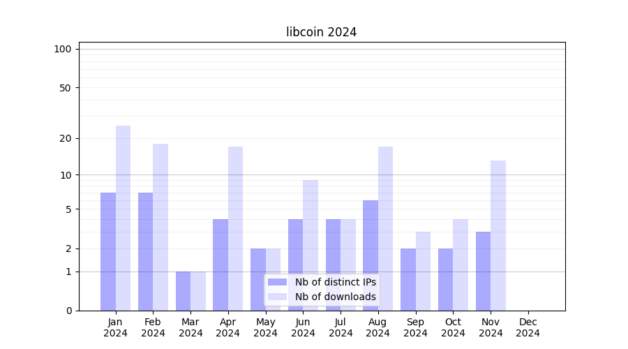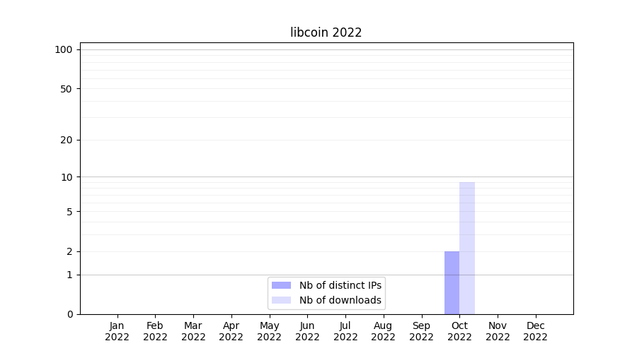 Number of downloads for workflow package libcoin, year by year, from 2025 back to 2015 (years with no downloads are omitted):