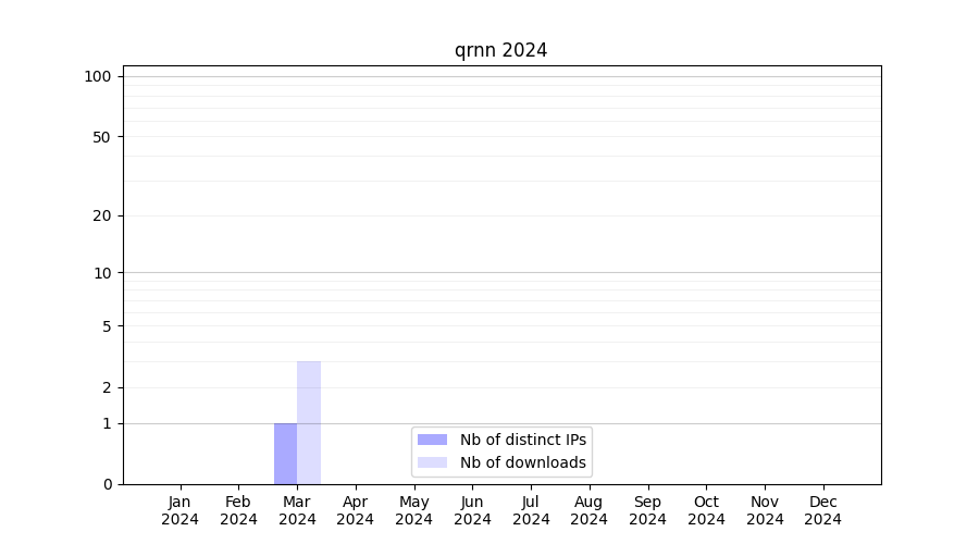 Number of downloads for workflow package qrnn, year by year, from 2025 back to 2015 (years with no downloads are omitted):