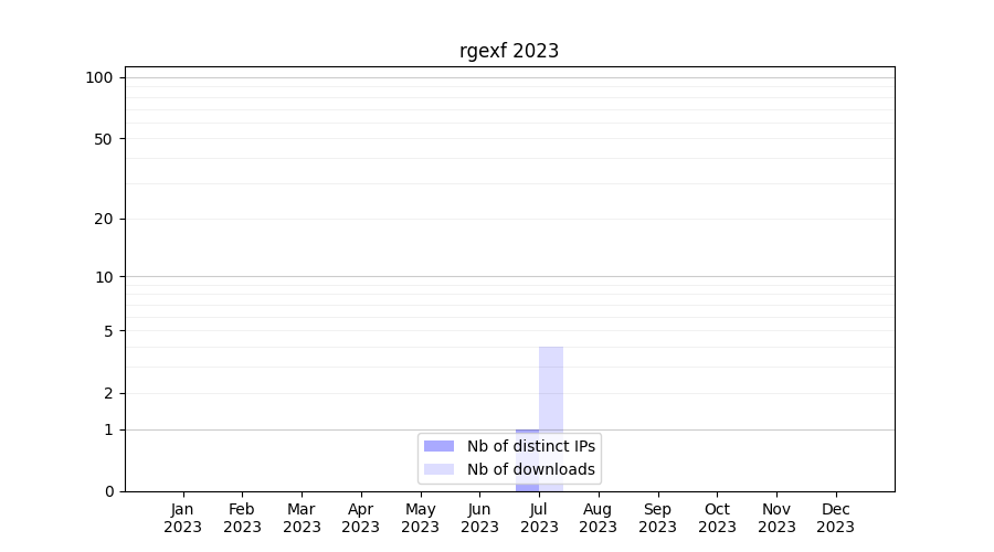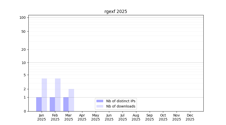 Number of downloads for workflow package rgexf, year by year, from 2025 back to 2015 (years with no downloads are omitted):