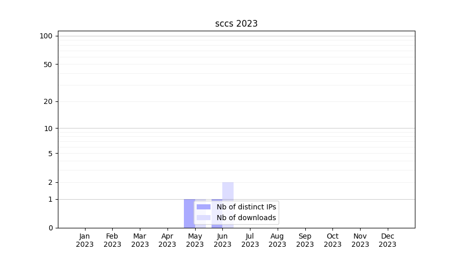 Number of downloads for workflow package sccs, year by year, from 2025 back to 2015 (years with no downloads are omitted):