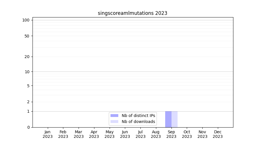 Number of downloads for workflow package singscoreamlmutations, year by year, from 2025 back to 2015 (years with no downloads are omitted):