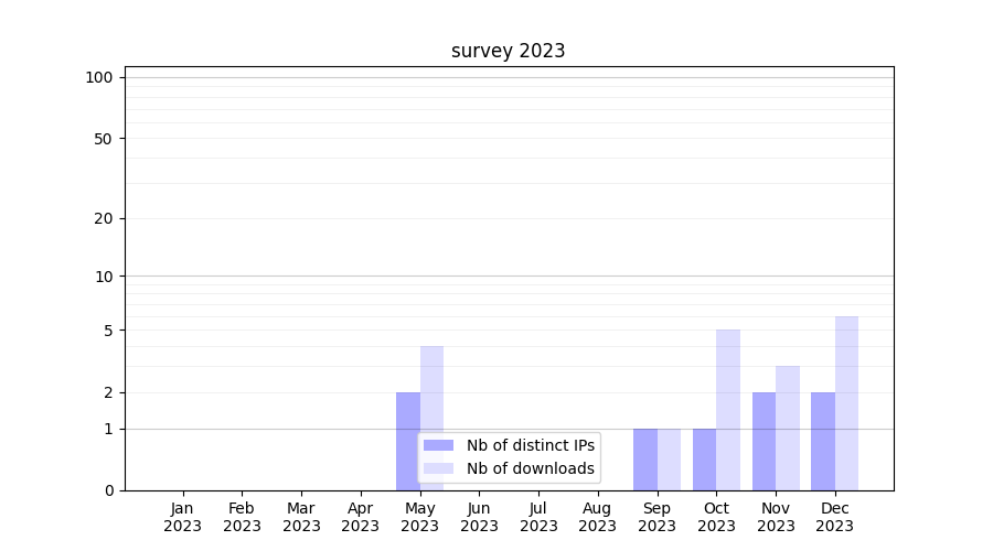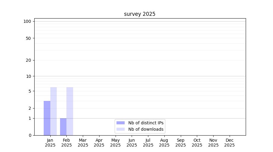 Number of downloads for workflow package survey, year by year, from 2025 back to 2015 (years with no downloads are omitted):