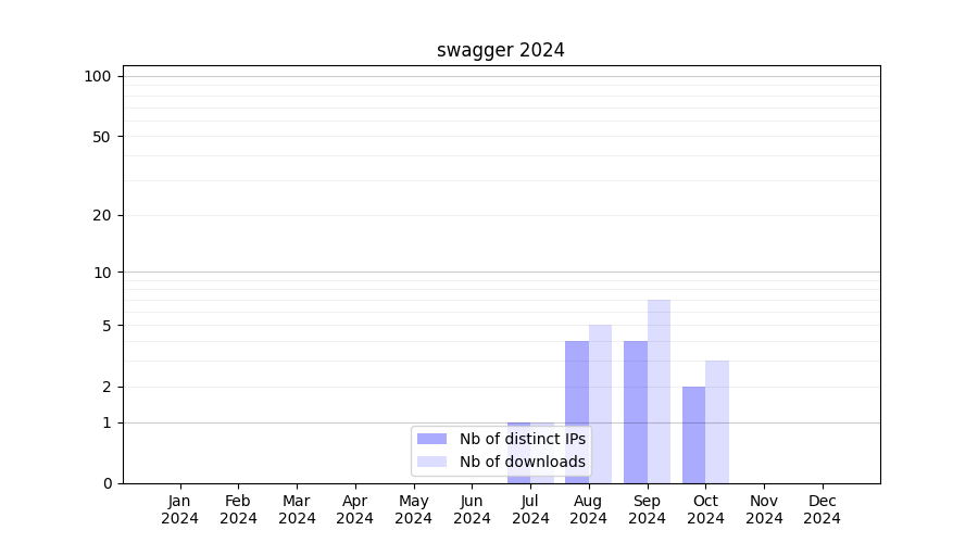 Number of downloads for workflow package swagger, year by year, from 2025 back to 2015 (years with no downloads are omitted):