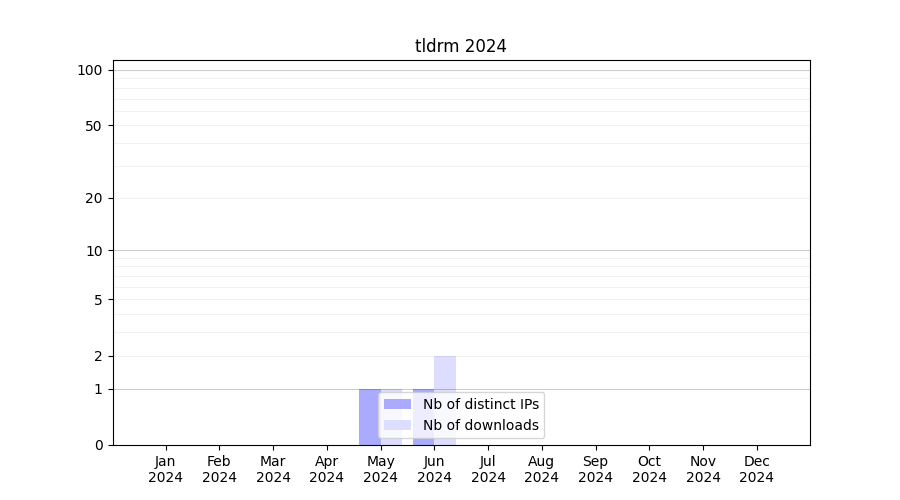 Number of downloads for workflow package tldrm, year by year, from 2025 back to 2015 (years with no downloads are omitted):
