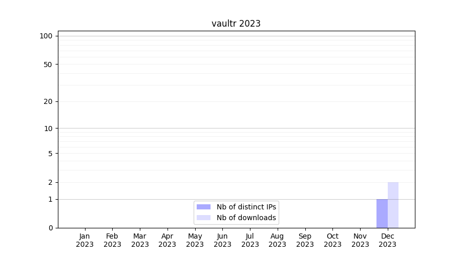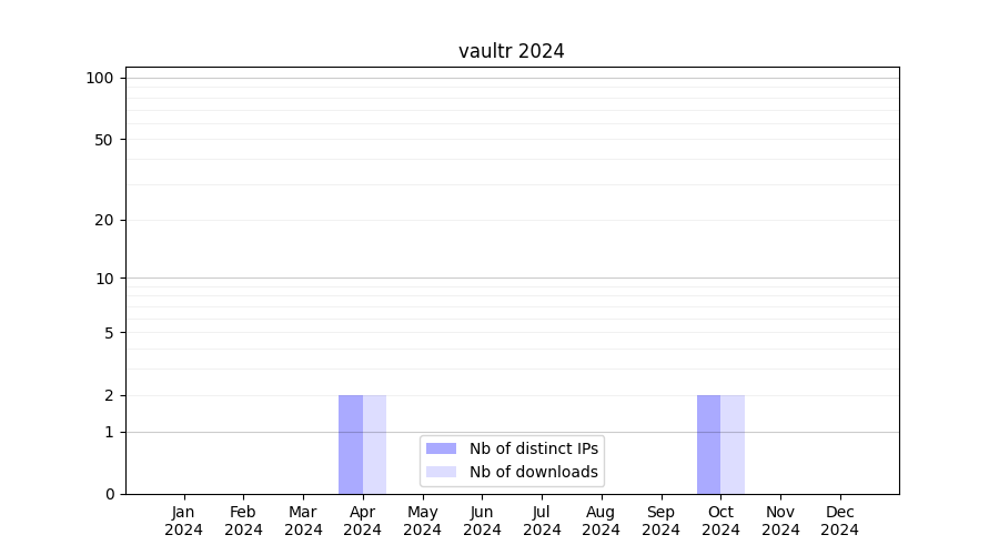 Number of downloads for workflow package vaultr, year by year, from 2025 back to 2015 (years with no downloads are omitted):