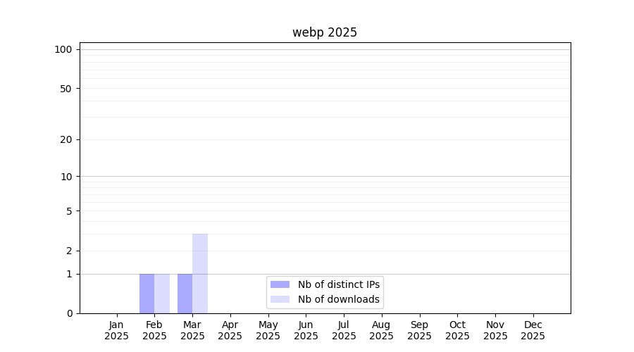 Number of downloads for workflow package webp, year by year, from 2025 back to 2015 (years with no downloads are omitted):