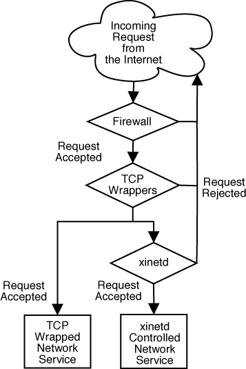 This chapter focuses on the role of TCP wrappers and xinetd in controlling access to network services and reviews how these tools can be used to enhance both logging and utilization management. For a discussion of firewalling with iptables, refer to Chapter 17 iptables.